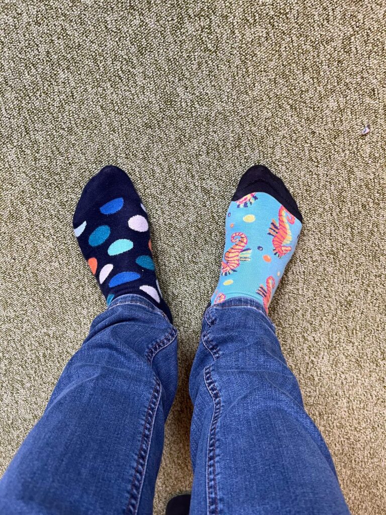 Am 21.03. soll man so bunte und möglichst verschiedene Socken tragen, als Zeichen, dass wir zwar alle verschieden, unterschiedlich bunt, andere Größen und Formen haben, aber eben doch im Grunde gleich sind. Wir sind nämlich alle Menschen, die unsere Gesellschaft facettenreich machen und das muss nicht nur gefeiert, sondern gelebt werden!