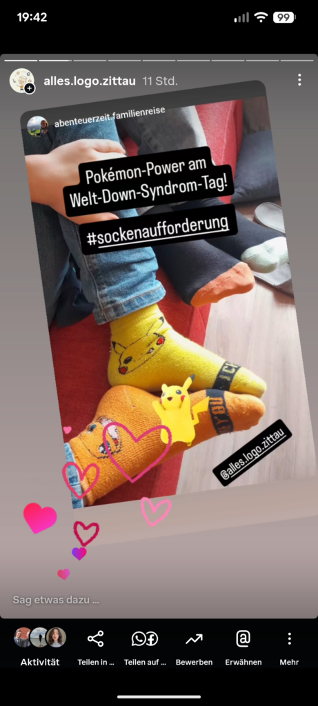 Um ein Zeichen dafür zu setzen, dass unsere Gesellschaft gerade davon profitiert, dass wir alle unterschiedlich sind und man sich mit Menschen unterschiedlichster genetischer Besonderheiten solidarisiert gibt es die „Sockenaufforderung“.