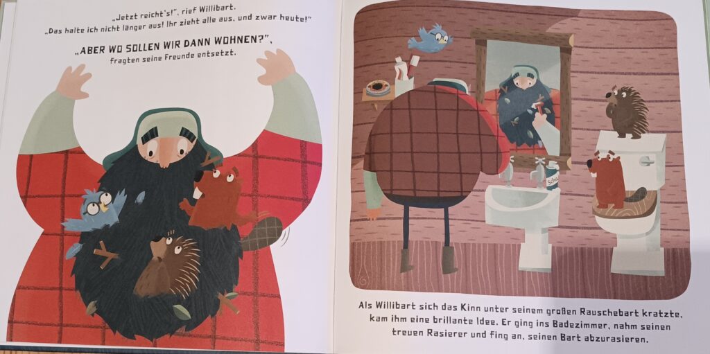 Mit wenigen, leicht verständlichen Sätzen gelingt es dem Autor sowohl Willibart als auch die Waldtiere als gleichberechtigte Parteien zu skizzieren. Hier gibt es kein klassisches „gut und böse“, denn jedes Lebewesen hat seine Berechtigung. Die Waldtiere können hier für sich selbst einstehen und für ihr Recht auf Lebensraum direkt in Aktion gehen, was sie hier im Buch mit bemerkenswerter, aber liebenswerter Eloquenz passiert.
